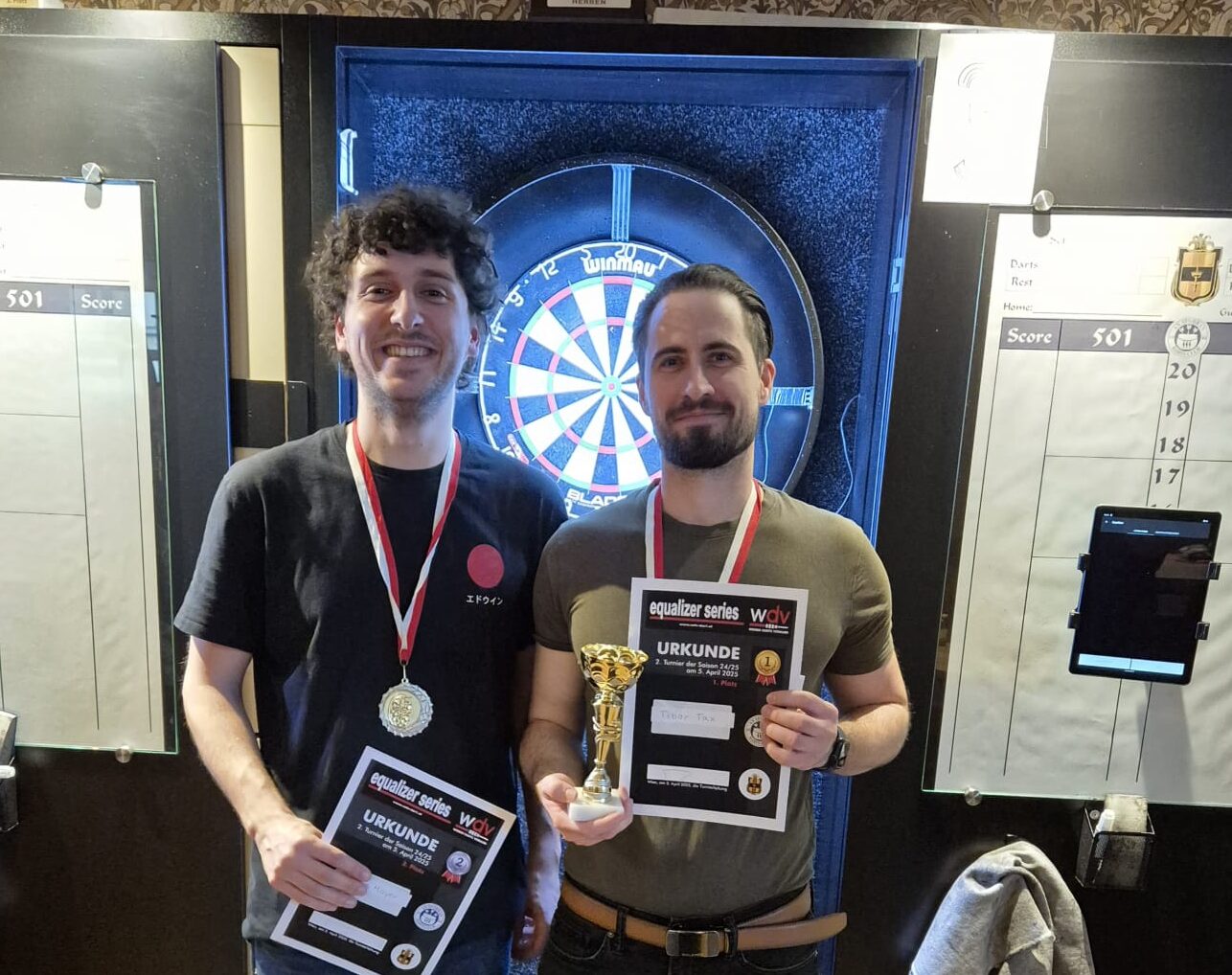 Besonders erfreulich aus Vereinssicht: Unsere eigenen Spieler/innen präsentierten sich in Topform und konnten mehrfach überzeugen. Tibor Tax schaffte es mit konstant starken Leistungen das Turnier für sich zu entscheiden mit einem Turnier Average von 58.52 Im Finale spielte er sogar bis zum Stand von 5 zu 2 einen Average von 80 plus und gewann die Partie dann mit knapp unter 70. Zweiter wurde Julius Mayer von Dc Darts Control.