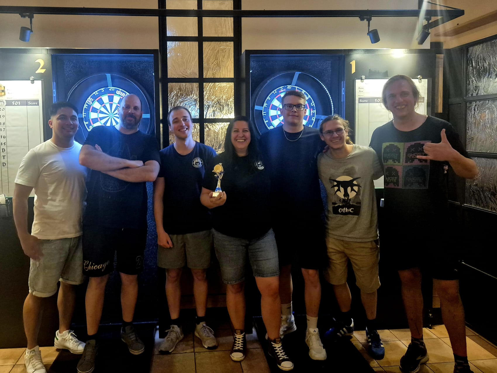 Unsere interne C&S Sommerliga ging zum fünften Mal über die Bühne und brachte mit Dart Side of the Moon einen Prämierensieger! Die Moonies bewiesen an allen Spieltagen ihr großes Talent, blieben den ganzen Sommer über ungeschlagen und sicherten sich den 1. Platz mit einem klaren 5:1-Finalerfolg über 404 Double Not Found. Eng wurde es nur im Halbfinale, wo die Big Beer Theory die Moons bis ins Entscheidungsdoppel zwangen. 404 DNF kann ebenso auf einen sensationellen August zurückblicken: Nicht nur gab es den 2. Platz nach einem Krimi im Halbfinale gegen Wurscht (5:4 nach mehreren überlebten Matchdarts), sondern auch den nachträglichen Aufstieg in die 4. Division der WDV Landesliga!